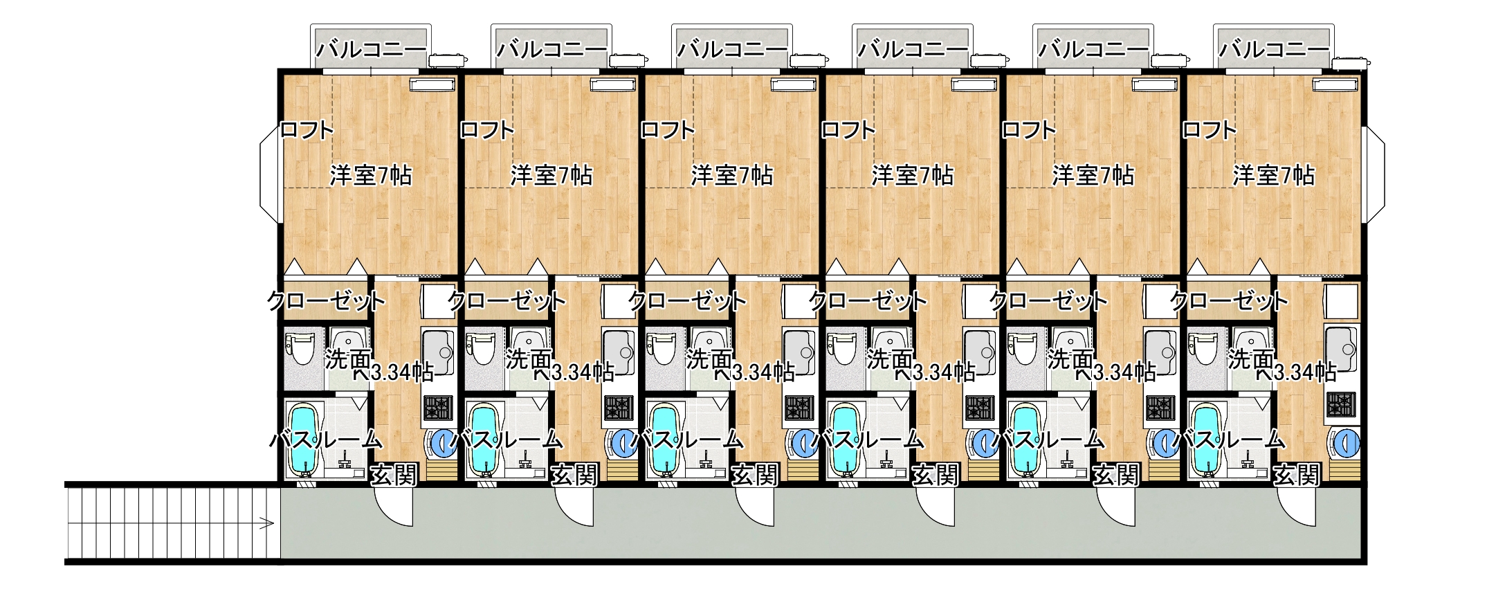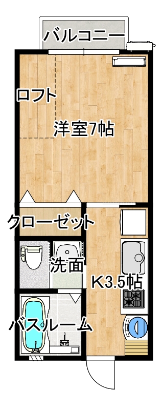 - 間取図は7帖になっておりますが実際には7.5帖です。ロフトベットも面積に含めますと8.5以上